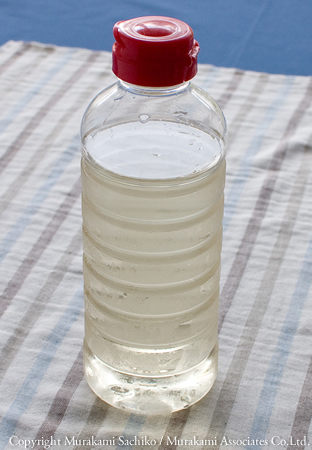 白梅酢は下の「ペットボトル」の中の少し黄みがかった液体。