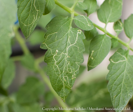 調べてみるとハモグリバエの幼虫、通称「エカキムシ」だそうです。