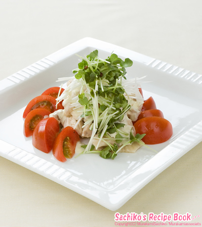 <トマトと蒸し鶏のサラダ>