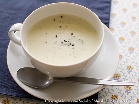 今日のご飯は、ズッキーニの冷製ポタージュと、蒸し鶏をマリネにした