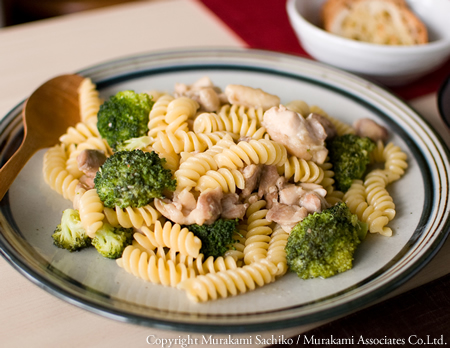 不思議とマカロニにも鶏もも肉にも、突き合わせ替わりのブロッコリーにもバランスよく味がなじみます。