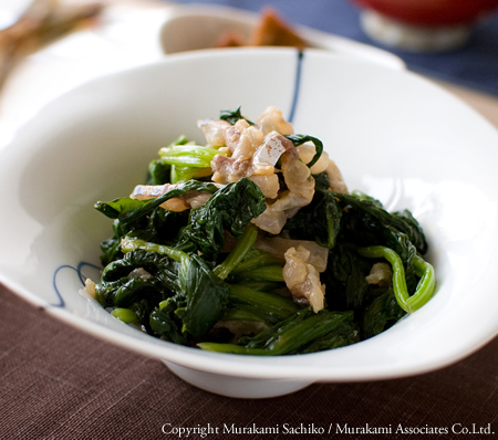 ほうれん草と辛子醤油であえて、梅雨の季節のスッキリした一品に仕立てる。